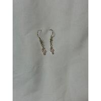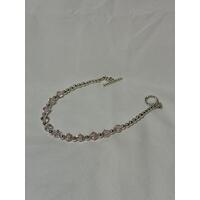 Handmade light rose bicone Czech crystals with silver plated beads and sterling silver chain and lobster clasp. 18 inches